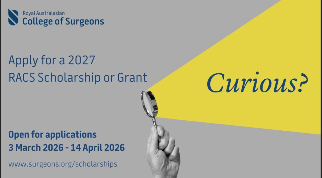 The Scholarships and Grants Program will be accepting applications from 3 March to 14 April 2026 with a range of scholarships and grants on offer for activity in 2027 which may be of interest to your membership. Please check the RACS website